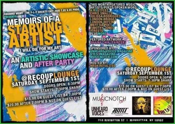 Hosted by acclaimed poet Hrsh Reyalitee, artists Chris Smalls, IRY Boyz, DaRuddest Jones, Mona Bodae, Blaq Dyminz, The Werds Man, A.R. Stylez, Hrsh Reyalitee, Y-Rests, pour their heart on the stage.