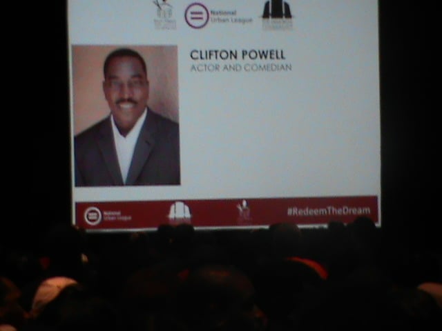In a banquet room at the Grand Hyatt Hotel in Washington, D.C. before dawn the National Urban League led a pre-march rally. Actor Clifton Powell was introduced by Marc H. Morial, president and CEO, National Urban League and former mayor of New Orleans.