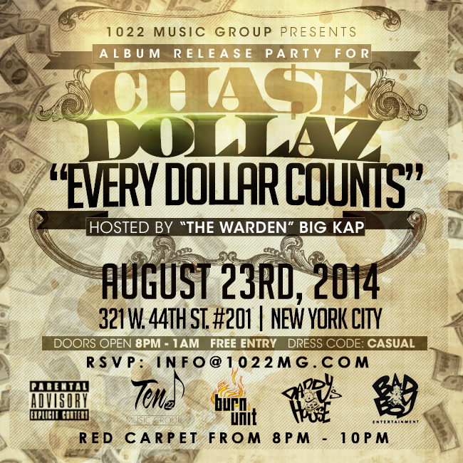 An album release party for Brooklyn rapper Cha$e Dollaz will take place this Saturday in New York City.