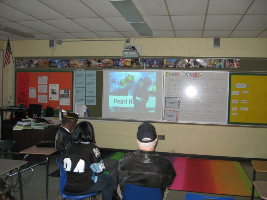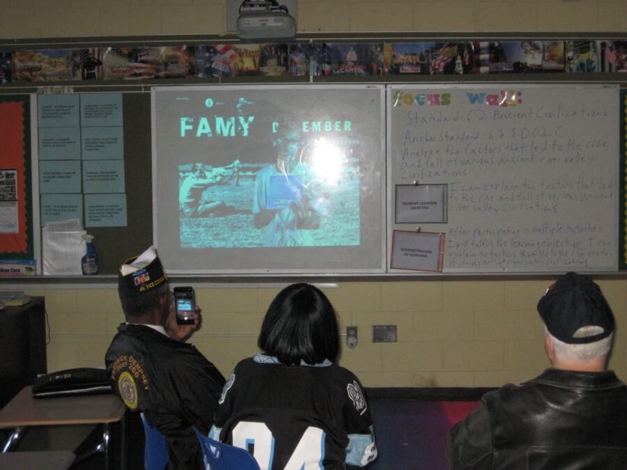 The veterans were asked questions from the students at the MLK Middle School and Ghana such as:
