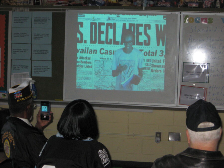 Besides asking questions, the students in Ghana presented a green screen presentation about Veterans Day and the attack on Pearl Harbor which took place on December 7, 1941.