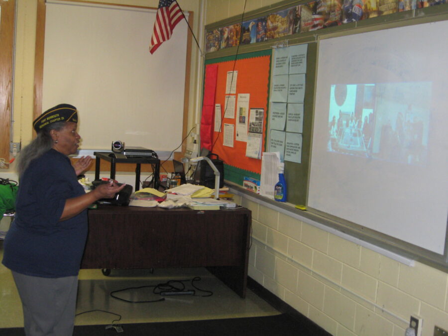 Sheila Batson, our current wonderful secretary at the middle school, spoke about her military career. She talked about the challenges in the military as well as being more than capable of performing her duties.