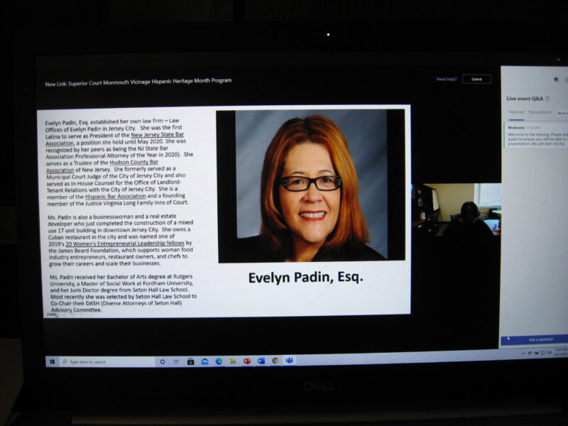 This program had many special guests representing their Hispanic Heritage. Those guests were Presiding Judge Carmen H. Alvarez, appellate division, Part D; Superior Court Judge Lourdes Lucas, Chair, Monmouth Vicinage EEO/AA Advisory Committee; Evelyn Padin, Past President, New Jersey State Bar Association, and Alba R. Rivera, Burlington Vicinage trial court administrator.