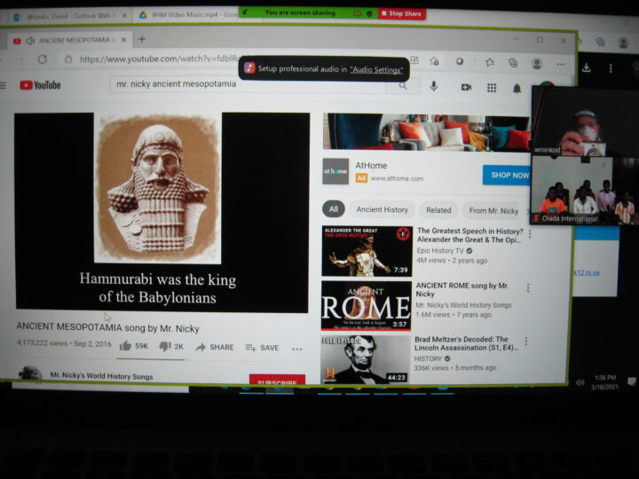 To start with, Mr. Wronko showed the students in Ghana multiple performances from Mrs. Elgart’s chorus. For instance, Mrs. Elgart’s chorus performed at 2020 Black History Month Celebration, Lean On Me by Bill Withers, Jennifer Holliday/And I’m Telling You Dreamgirls, songs from Stevie Wonder, songs from the Supremes, and songs from the Temptations.