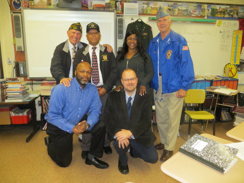 After the remembrance of Freddie Mercury, the Memorial Day celebration continued with Mr. Wronko sharing images of the past veterans that visited the Asbury Park School District, Lou Parisi, George Reed, and Alfonso Freda. In addition, Mr. Wronko shared a picture with Tuskegee Airman, George Watson, which was a celebration of Mr. Watson’s service at the VFW post in Asbury Park.