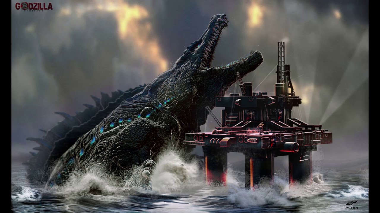 • Godzilla crawling up on the battleship