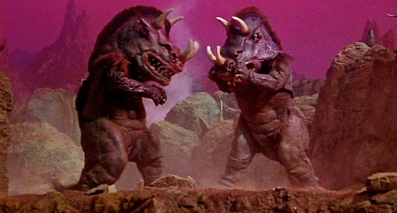 Another thing on my mind is how part of Godzilla vs Kong is in a way similar to stories such as Jules Verne’s A Journey to the Center of the Earth and Edgar Rice Burroughs’ At the Earth’s Core. All three deal with a world beneath the surface of the Earth as well as prehistoric life that has not been seen by the eyes of man. In Godzilla vs Kong, when Kong went underground into the Hollow Earth, it reminded me of a scene from the movie The Fabulous Journey to the Center of the Earth because in that movie brave explorers run into a giant gorilla that resembled King Kong. The images below show a comic book of the original story of A Journey to the Center of the Earth, a scene from Godzilla vs Kong when Kong is battling the Nozuki (Warbat), two rhino dinosaurs fighting in the movie At the Earth’s Core, Godzilla vs Kong once again with Kong in Hollow Earth, and the giant gorilla from The Fabulous Journey to the Center of the Earth. Images were from Syfy Wire, Flickr, Scified, and Red/Media Blasters.