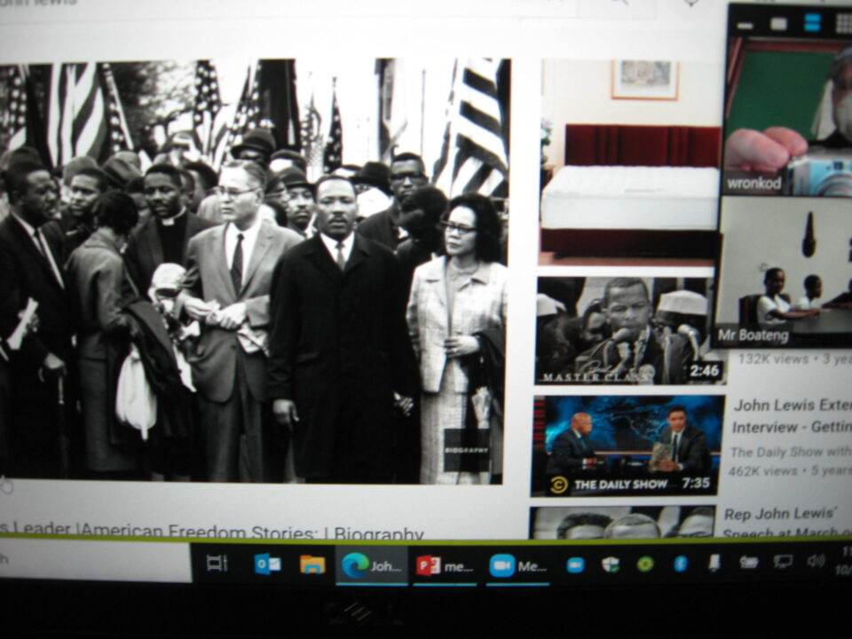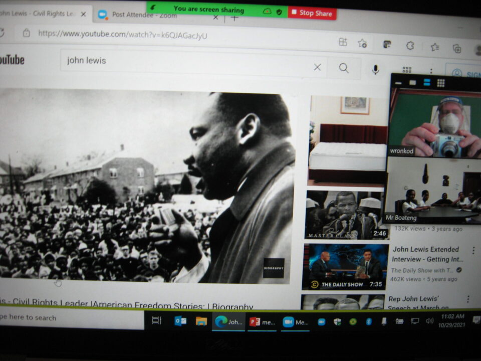 Ghana Session: Solid Rock Foundation School Session with Aruba, John Lewis, Salem Witch Trials and McCarthyism, Athens and Democracy, Bill Clinton, What If…? Student Drawings