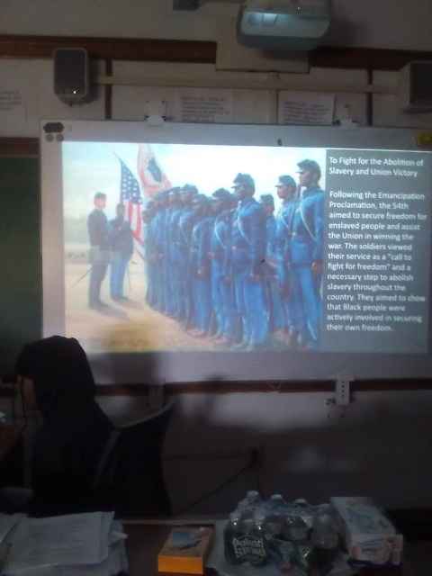 Before the VFW veterans shared their experiences, Mr. Wronko’s students Semaj Reid, Maria Riano Cruz, Umira Randolph, Axel Rivera-Gonzalez, Dayln Bunting, Princess Kimyrah Lanee Gue, and Angel Olguin Espana conducted presentations on Blacks in the military.
